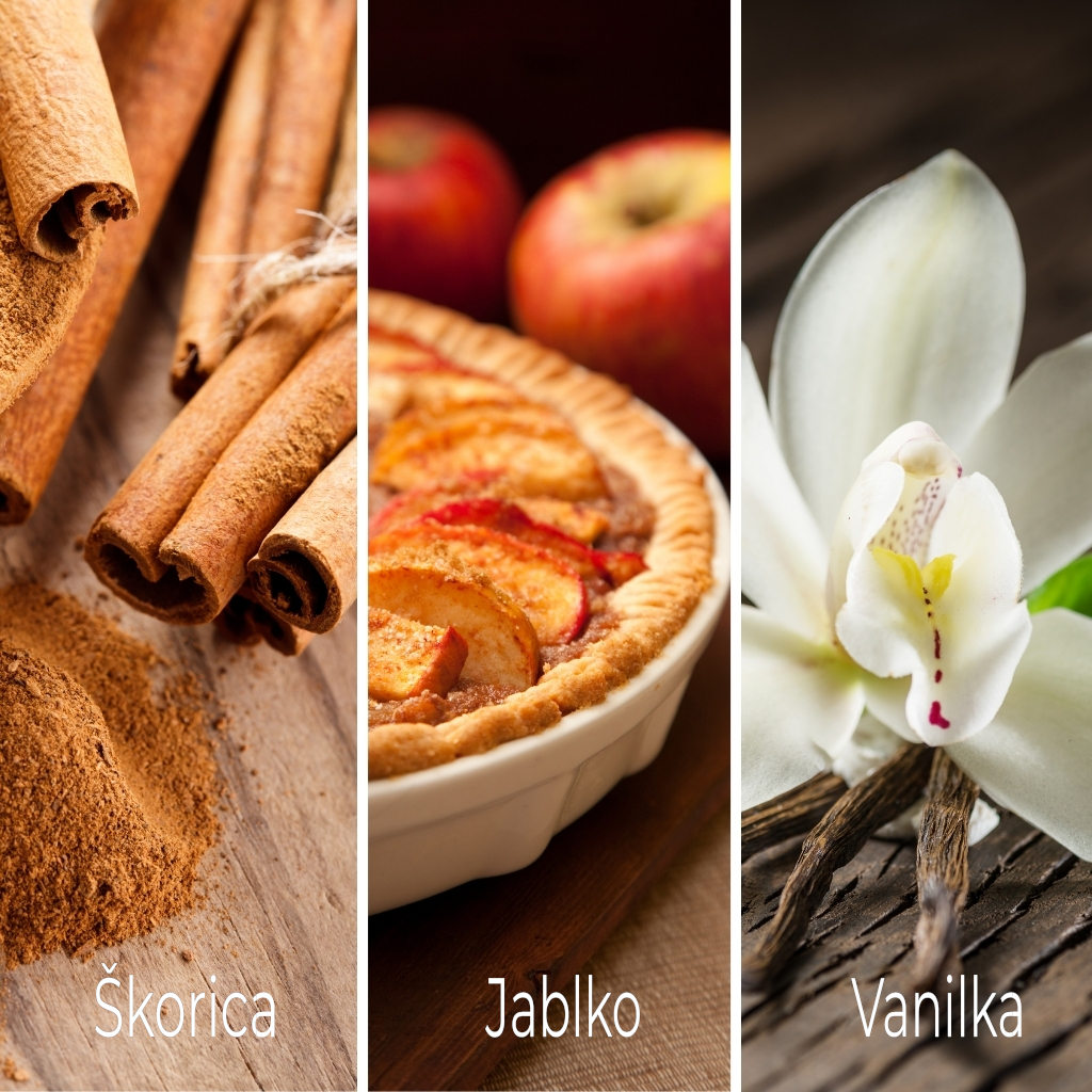 - Jablko – sladká, svieža a šťavnatá aróma, ktorá pripomína domáce ovocné koláče a zimné dobroty.